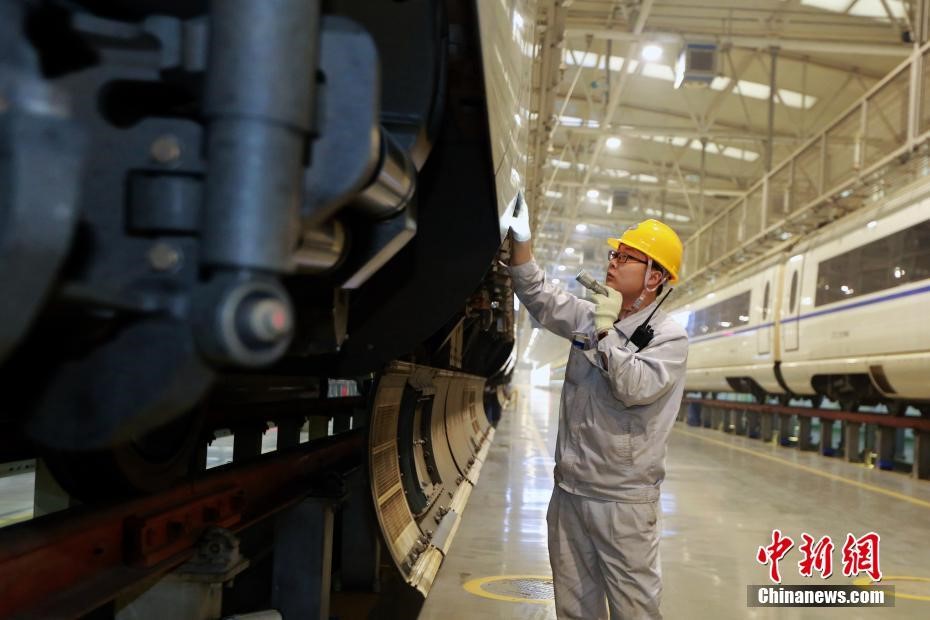 中國西部最大的動車組檢修基地——西安動車段,對全段所有動車組列車進行全面檢修,消除設備安全隱患,提高動車組運用質量。王曙天 攝
