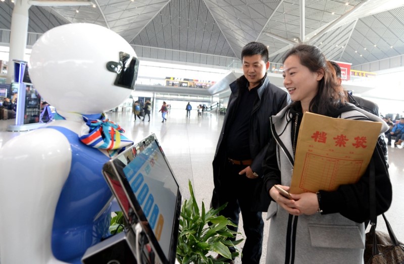 旅客在西安北站使用智能機器人查詢乘車信息。李一博 攝