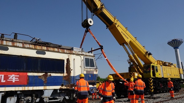 近日,西安鐵路監管局聯合西安鐵路局在臨潼救援基地開展汛期鐵路交通事故應急救援和調查演練,西安鐵路局10個處室和西安地區12家單位參加演練。圖為應急演練現場。