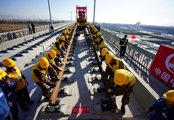 11月1日,由中鐵三局承建的京張高鐵全線鋪軌工程正式開始。京張高鐵是國家重點(diǎn)建設(shè)項(xiàng)目,是2022年北京冬奧會(huì)的重要交通保障線。京張高鐵全長174公里,建成后,乘高鐵從北京到張家口的時(shí)間將縮短到50分鐘,對(duì)于助力奧運(yùn)、促進(jìn)京津冀一體化發(fā)展、連接西部都具有十分重要的戰(zhàn)略意義。