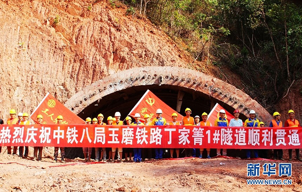 中老鐵路國內段——玉(溪)磨(憨)鐵路13標丁家箐1號隧道近日順利貫通。中老鐵路國內段玉磨鐵路13標位于云南省普洱市,該標段正線全長19.2公里,共有14座隧道。丁家箐1號隧道是該標段貫通的第4座隧道,余下10座隧道將在今年內陸續貫通。