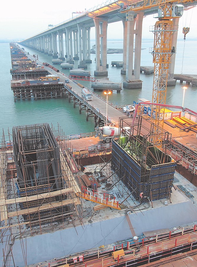 新建福廈鐵路泉州灣跨海大橋主墩首節(jié)塔柱澆筑