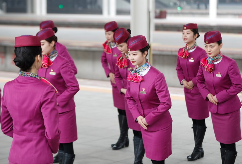 2020年春運即將拉開帷幕,中國鐵路成都局集團有限公司重慶客運段動車一隊組織動車組乘務人員進行基礎業務、妝容禮儀等方面的培訓,提升服務水平。