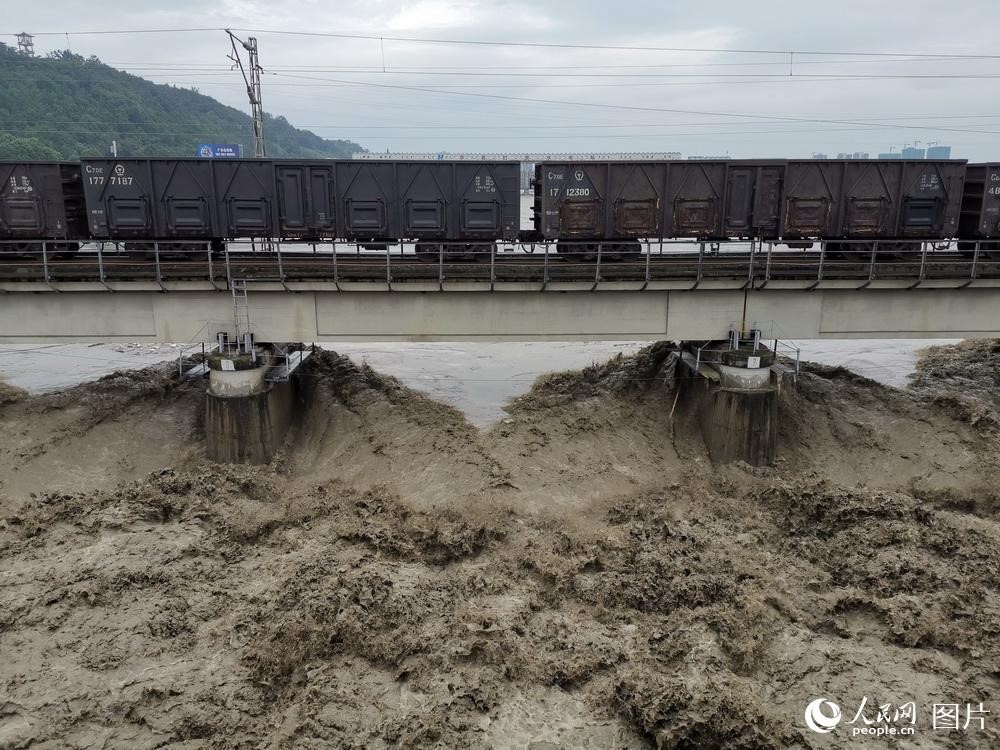 洪水襲擊寶成鐵路涪江大橋 超8100噸“重車壓梁”護橋