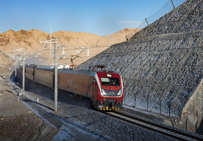 12月9日,K9756次客運列車在格庫鐵路阿爾金山隧道區段行駛。