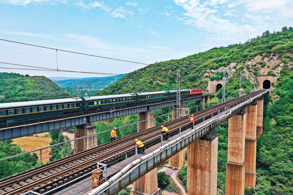 洛陽工務段組織黨員突擊隊對隴海鐵路楊連第大橋進行安全隱患排查,保障汛期列車運行安全。