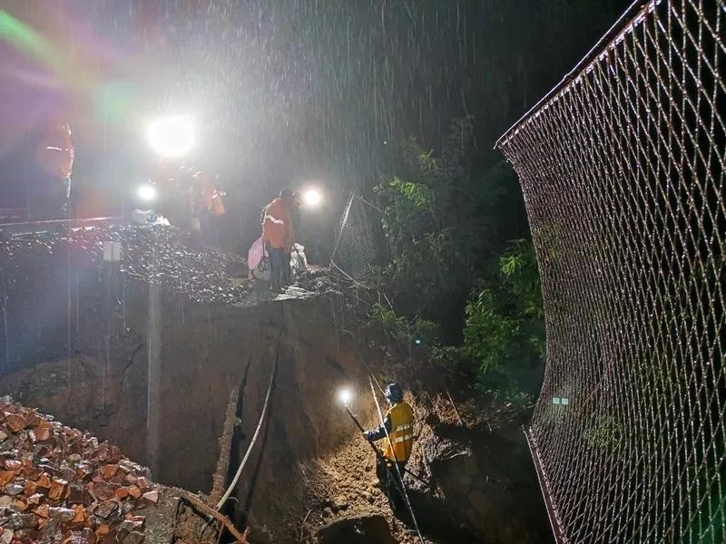 隴海、焦柳線出現水漫道床、路基塌陷、邊坡溜坍等水害,洛陽工務段迅速組織搶險人員,攜帶鐵锨、石砟叉、編織袋、木樁等工機具趕赴現場,同時申請防洪備用片石6車,組織3支搶險協議隊伍和4臺挖掘機、1臺鏟車等搶險機械迅速投入到搶險之中,對陷穴處所拋投片石進行回填,并檢修和夯實搗固線路設備。
