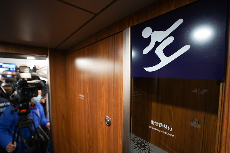 G9981次北京冬奧列車內設置的滑雪器材柜。