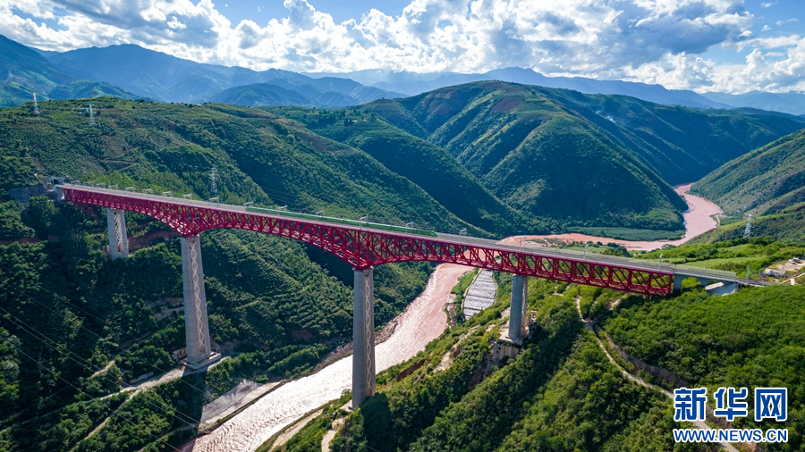 復興號動車行駛在麗香鐵路金沙江特大橋上。