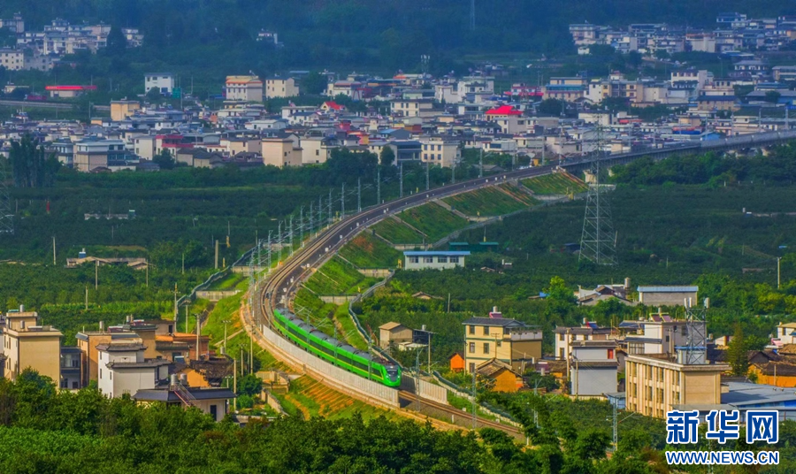 云南省保山市隆陽區(qū),復興號動車穿行在城鄉(xiāng)之間。
