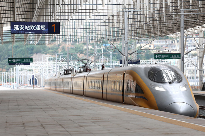 西延高鐵聯調聯試綜合檢測列車駛入延安站。