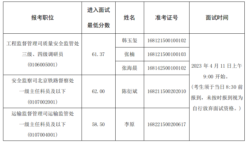 國家鐵路局機關2023年公開遴選公務員面試公告