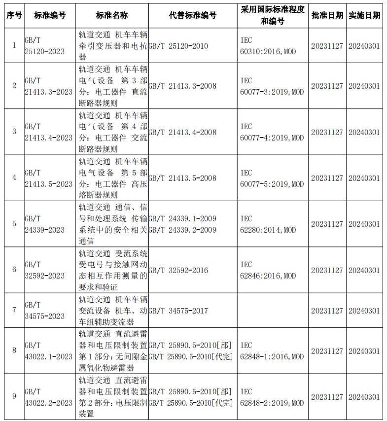 《軌道交通 機車車輛牽引變壓器和電抗器》等9項鐵路國家標準正式發布