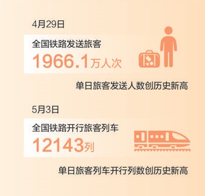 今年“五一”假期,旅客出行需求非常旺盛,全國鐵路單日旅客發送人數、旅客列車開行列數均創歷史新高。