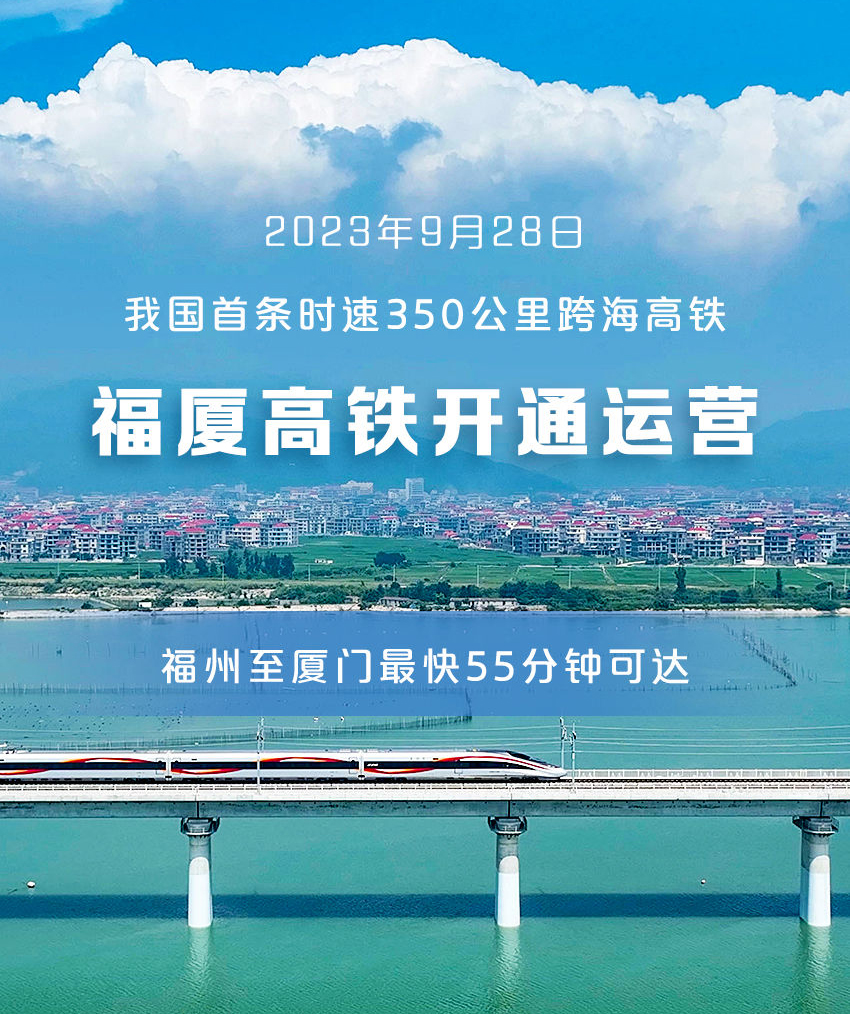 9月28日,我國首條時速350公里跨海高鐵——福州至廈門至漳州高鐵(福廈高鐵)開通運營。福州至廈門最快55分鐘可達,兩地實現“一小時生活圈”。