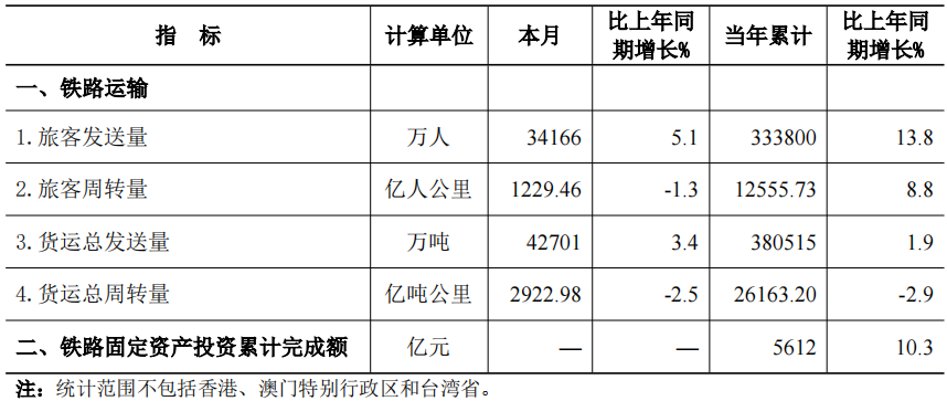 2024年9月份全國鐵路主要指標完成情況