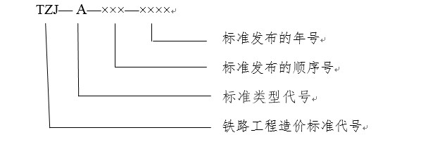 第三十五條 辦法規則、專業定額、費用標準等鐵路工程造價標準編號由科法司統一管理。編號格式為: