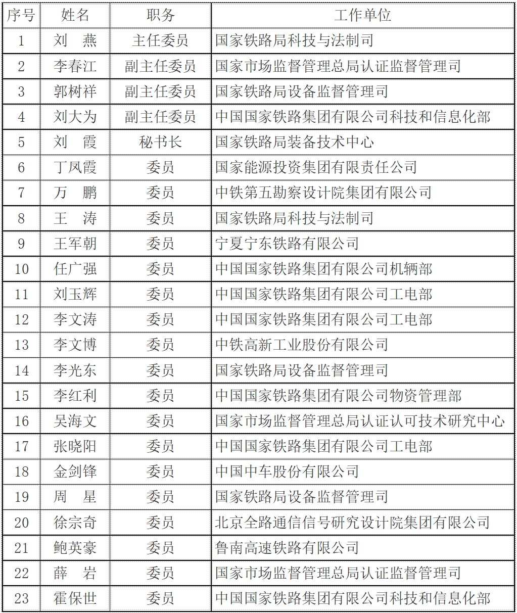 市場監管總局 國家鐵路局關于發布鐵路產品認證目錄(第一批)和鐵路產品認證技術委員會成員名單的公告