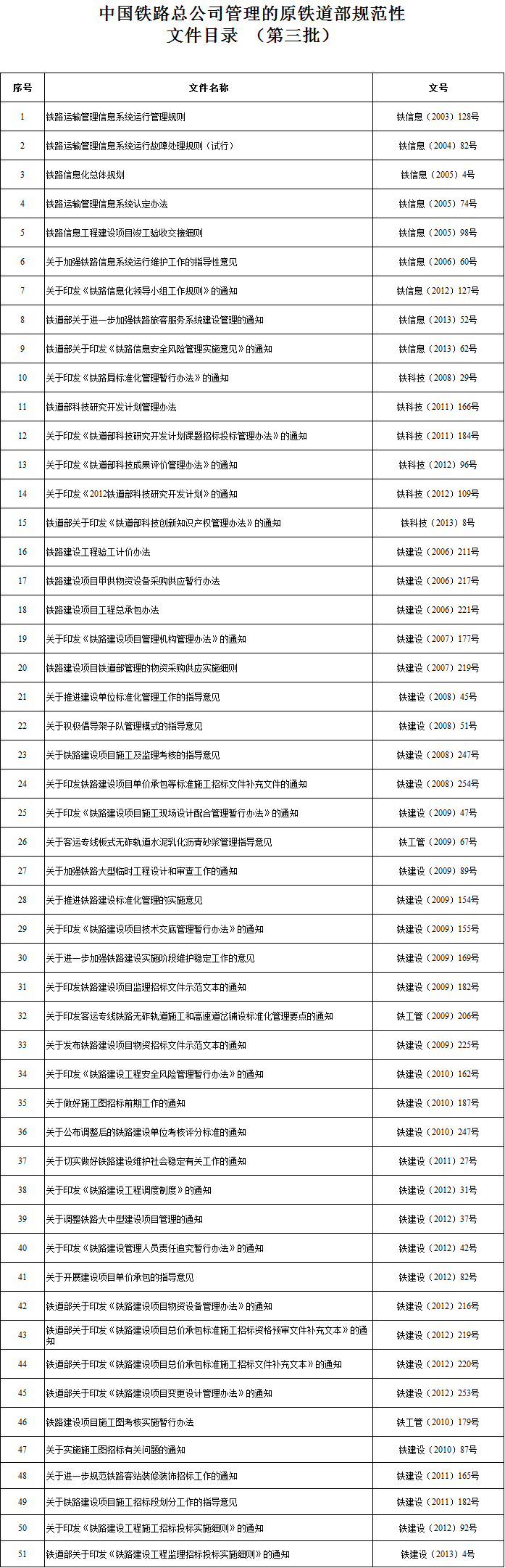 附件:中國(guó)鐵路總公司管理的原鐵道部規(guī)范性文件目錄(第三批)