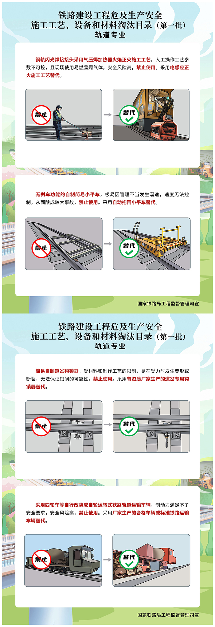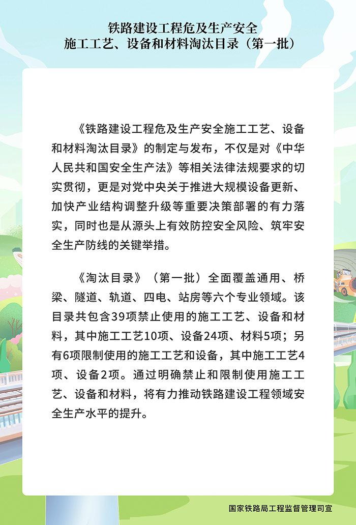 《鐵路建設工程危及生產安全施工工藝、設備和材料淘汰目錄(第一批)》宣傳海報