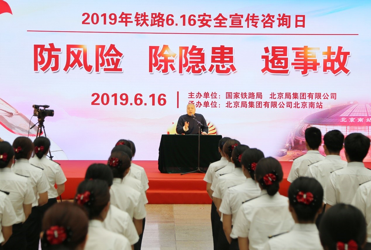 鐵路文工團(tuán)演員在北京南站表演安全文藝節(jié)目。