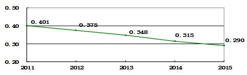“十二五”鐵路交通事故10億噸公里死亡率變化趨勢圖