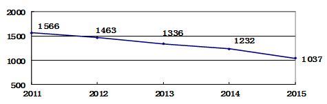 “十二五”鐵路交通事故死亡人數變化趨勢圖