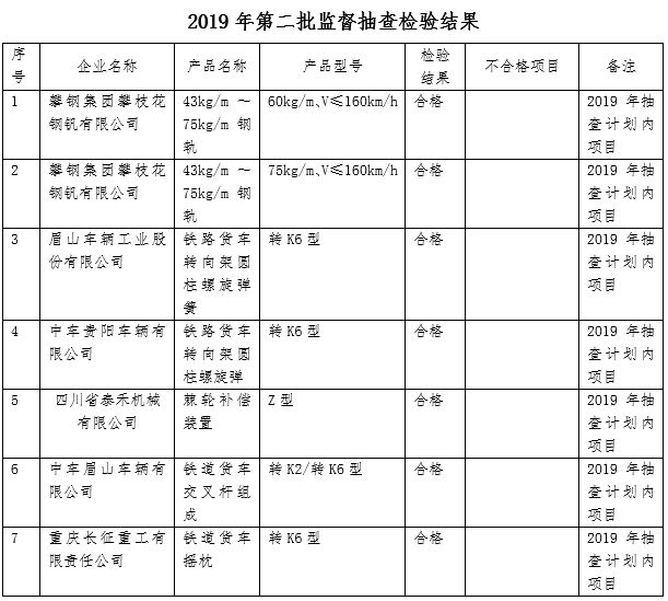 成都鐵路監督管理局 關于監督抽查鐵路專用產品質量情況的通報(2019年第2批)
