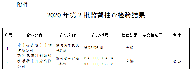 國家鐵路局關于監督抽查鐵路專用產品質量情況的通報(2020年第2批)