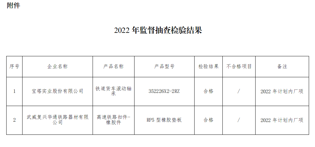 根據《鐵路專用產品質量監督抽查管理辦法》(國鐵設備監規〔2020〕63號),現將2022年鐵路專...