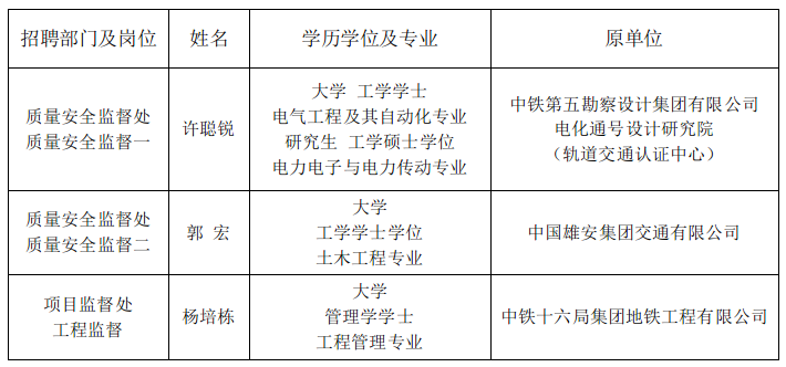 國家鐵路局工程質量監督中心2023年度面向社會公開招聘擬聘用人員公示