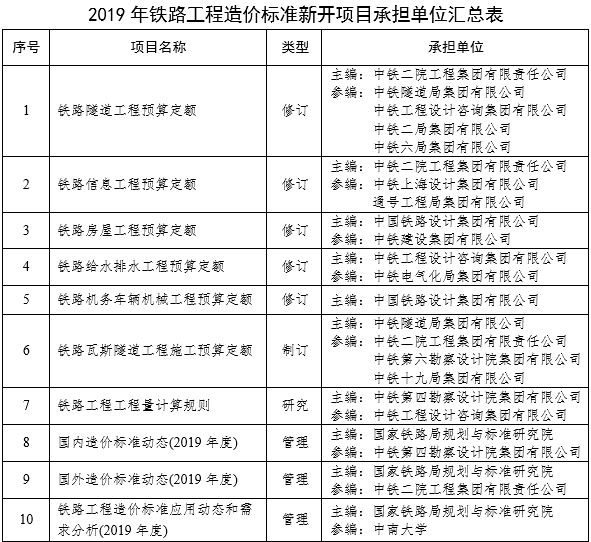 國家鐵路局規劃與標準研究院2019年鐵路工程造價標準新開項目承擔單位選擇方案公示